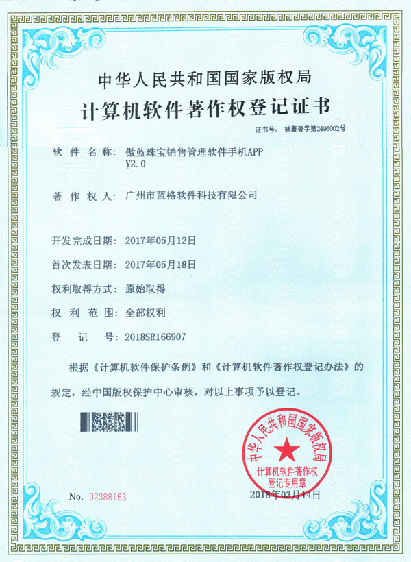 連續3屆9年,獲得國家“高新技術企業證書”;獲得“中國軟件行業信用等級AAA”證書;累計獲得36項軟著證書。