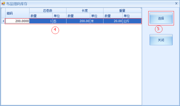 ○4 選擇一條庫存細碼數據,做為開剪數據。