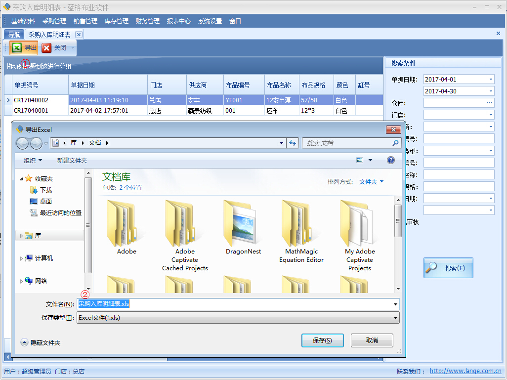 導(dǎo)出“采購入庫明細表”excel表格數(shù)據(jù)