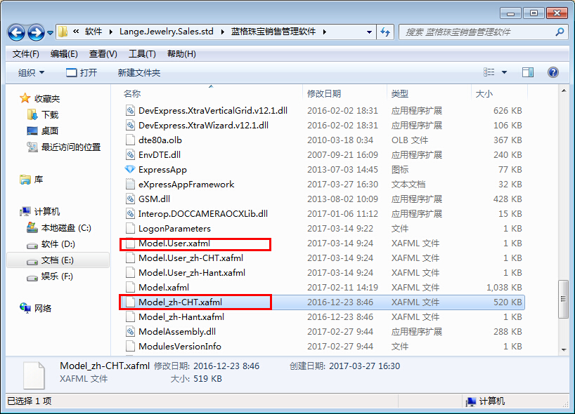 第二步進(jìn)入軟件的文件夾找到【Model.User.xafml】和【Model.User_zh-CN.xafml】并刪除,重新啟動軟件即可