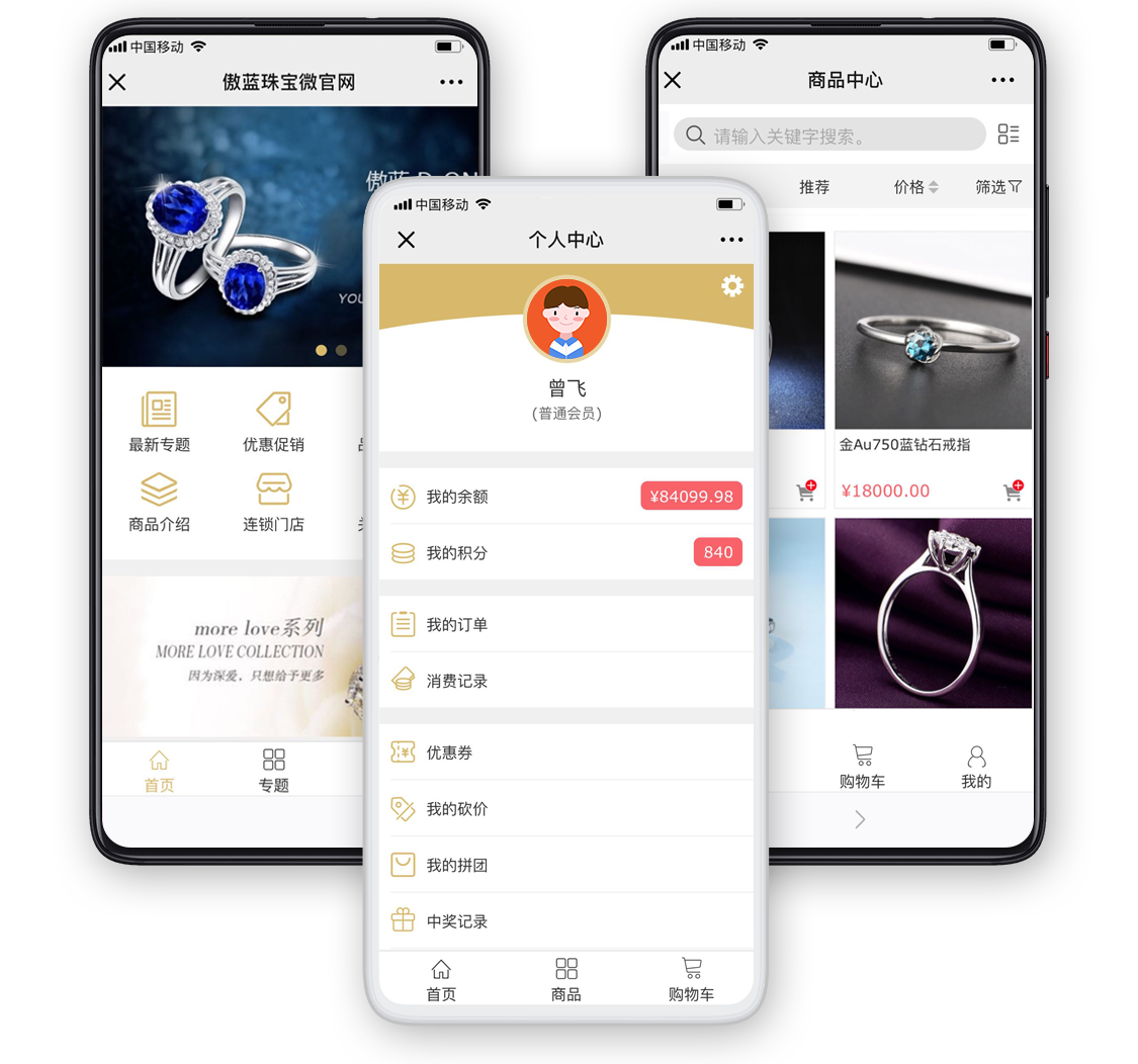 實(shí)操案例:通過傲藍(lán)珠寶微信會員系統(tǒng)的營銷工具推出拼團(tuán)活動:“兩個人拼團(tuán)就能以100元買到原價130元的商品”,這比“全場7.7折任選”讓人更有買了就賺到的感覺。以及通過分享砍價鏈接, 分享的人越多,購買商品的價格就越低,低至1元。