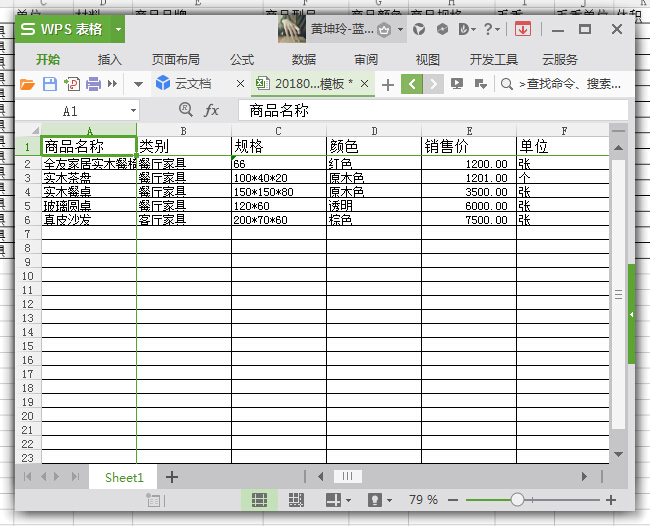 ①已有一個制成excel表格的家具產品資料信息,如圖: