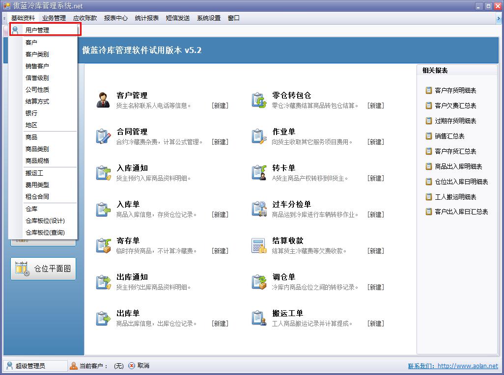 在基礎(chǔ)資料里打開(kāi)用戶管理,如圖: