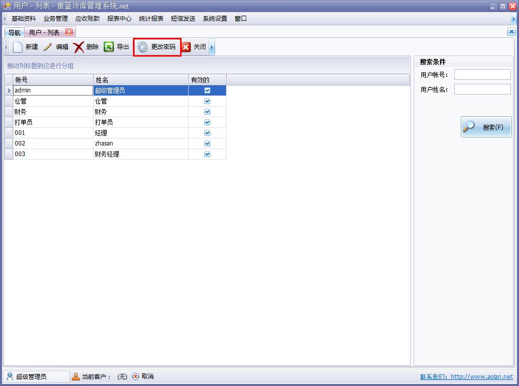 例如,系統(tǒng)的個(gè)別用戶離職,為了保障不必要的數(shù)據(jù)流失,或者避免惡意破壞冷庫(kù)管理軟件數(shù)據(jù)的情況出現(xiàn),管理員可修改此離職用戶的登錄密碼,性禁止此用戶登錄系統(tǒng)。