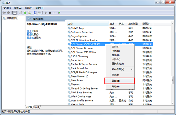 第四步,鼠標右擊SQL server(SQLEXPRESS)