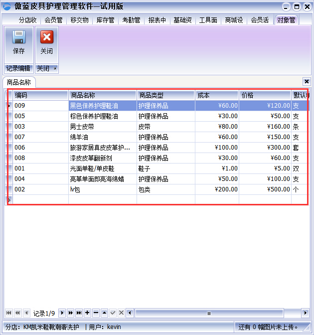 更多傲藍皮具護理店管理系統(tǒng)中針對護理產(chǎn)品銷售及庫存管理,請關(guān)注傲藍皮具護理店軟件官網(wǎng)。