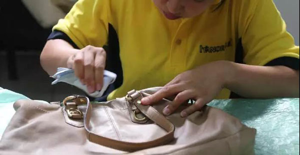 許多朋友問道:“能不能用機械替代手工完成保養(yǎng),以此來節(jié)省時間與人力成本么?”回答只有一個字:“不!”因為皮料不是布料,而且大部分包包都有內襯支撐物,一旦遇到水或溶劑就會變形,所以不能像干洗店一樣放到干洗機里進行洗刷,只能手藝操作。