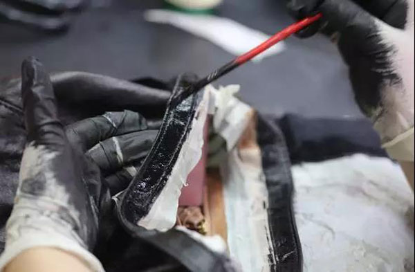 大部分真皮包包在運用過程中,邊角和手柄部位極容易磨損掉色,或許劃傷破損。這時要選用軟性膠水對破損部位進行粘合(切不可以用502)然后進行補傷打磨,小羊皮修補時要分外仔細,以免發(fā)生由補傷失誤而造成很明顯的傷痕及不平整的現(xiàn)象。創(chuàng)傷、磨損部位的修正、還原、創(chuàng)意修復,取決于護理師的仔細程度和操作熟練度。