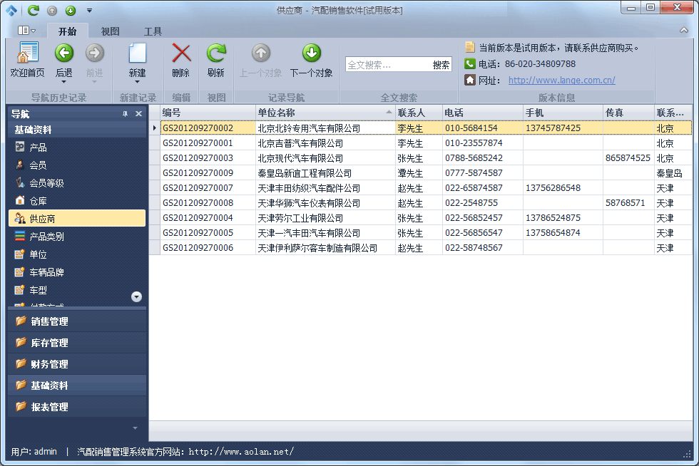 傲藍汽車配件銷售管理軟件,里面的供應商管理,詳細記錄了供應商信息,包括:詳細的單位名稱、聯系人、電話、地區、手機等,方便查找。還可以利用關鍵詞在軟件中進行搜索查找方便快捷。
