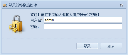在彈出的登錄窗口中,輸入用戶名和密碼,試用版的用戶名默認(rèn)為admin,密碼為空。點擊“登錄”開始登錄傲藍(lán)物流軟件。