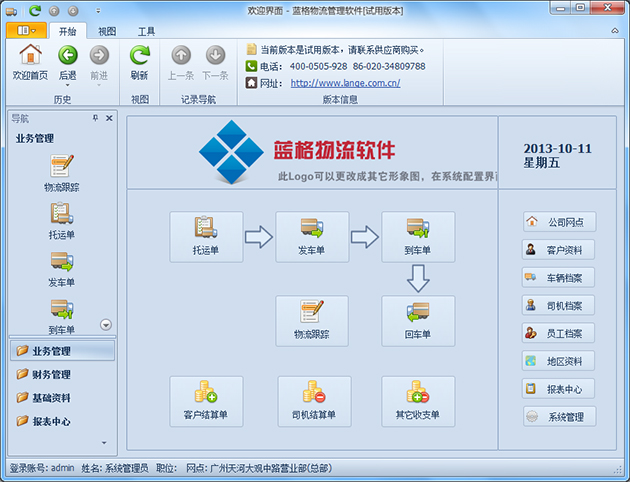 登錄成功后會自動進(jìn)入傲藍(lán)物流軟件的歡迎界面,然后就可以開始使用傲藍(lán)物流軟件了。
